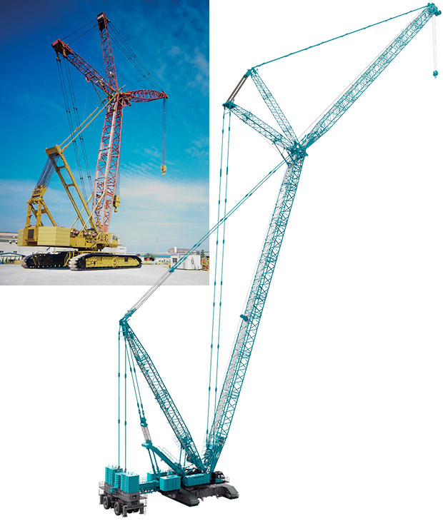 1984年神戶制鋼獨自開發(fā)了全液壓式吊裝450t的履帶起重機7450型,提高了其在海內(nèi)外的知名度。1970年開始,利用其卓越的技術,開發(fā)出行業(yè)領先、吊裝超過300t的神戶制鋼“超大型履帶起重機”,開啟了超級大型起重機的“新時代”。1993年上市的SL13000型是載入史冊的楷模, 800t吊裝使提高產(chǎn)品吊裝能力的設計思想變成了現(xiàn)實。