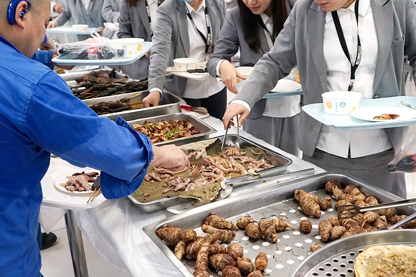 為弘揚(yáng)江南傳統(tǒng)文化,豐富職工生活,11月16日,杭州神鋼在公司食堂特舉辦“神鋼 名羊天下“為主題的美食節(jié)活動(dòng)。本次美食節(jié)活動(dòng)以本地的特色品種湖羊?yàn)橹鞔虍a(chǎn)品 :紅燒羊肉、白切羊肉、香辣羊蝎子、羊雜湯等,配以江南特色糕點(diǎn):法根綠豆糕、法根雪餅、法根桃酥等四十余品種。美食當(dāng)前,怎能錯(cuò)過(guò)!開(kāi)餐后,大家紛紛選取自己喜歡的食物,大快朵頤。公司全體員工及外協(xié)員工共980余人在歡聲笑語(yǔ)中,共享了本次美食盛宴。