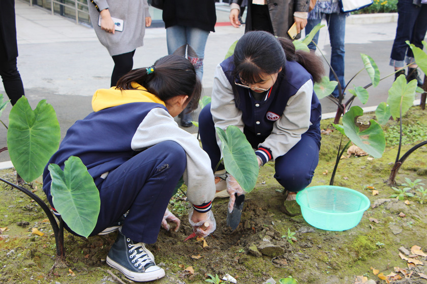 儀式前,來自全區(qū)的教育局代表和7家企業(yè)代表在校內(nèi)進(jìn)行了參觀,栽種、覆土,繪畫、陶藝……向陽橋中學(xué)豐富而有趣的課程吸引著在場的每一位來賓。